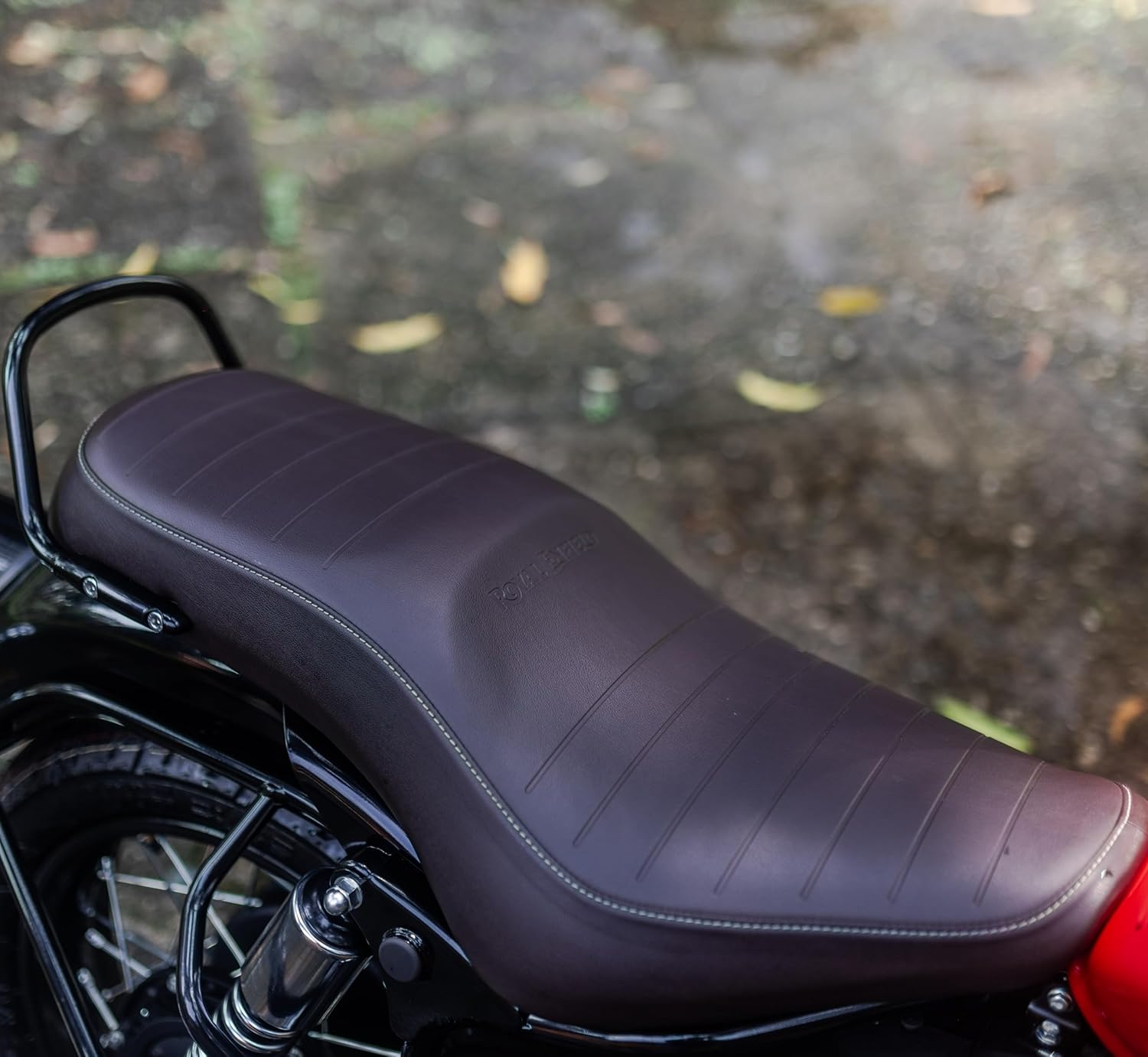 The Brown Low Ride seat offers 20mm reduction in height whilst retaining sufficient foam thickness to evenly distribute weight for maintained comfort over long distances. It comes with embossed Royal Enfield and Bullet branding.